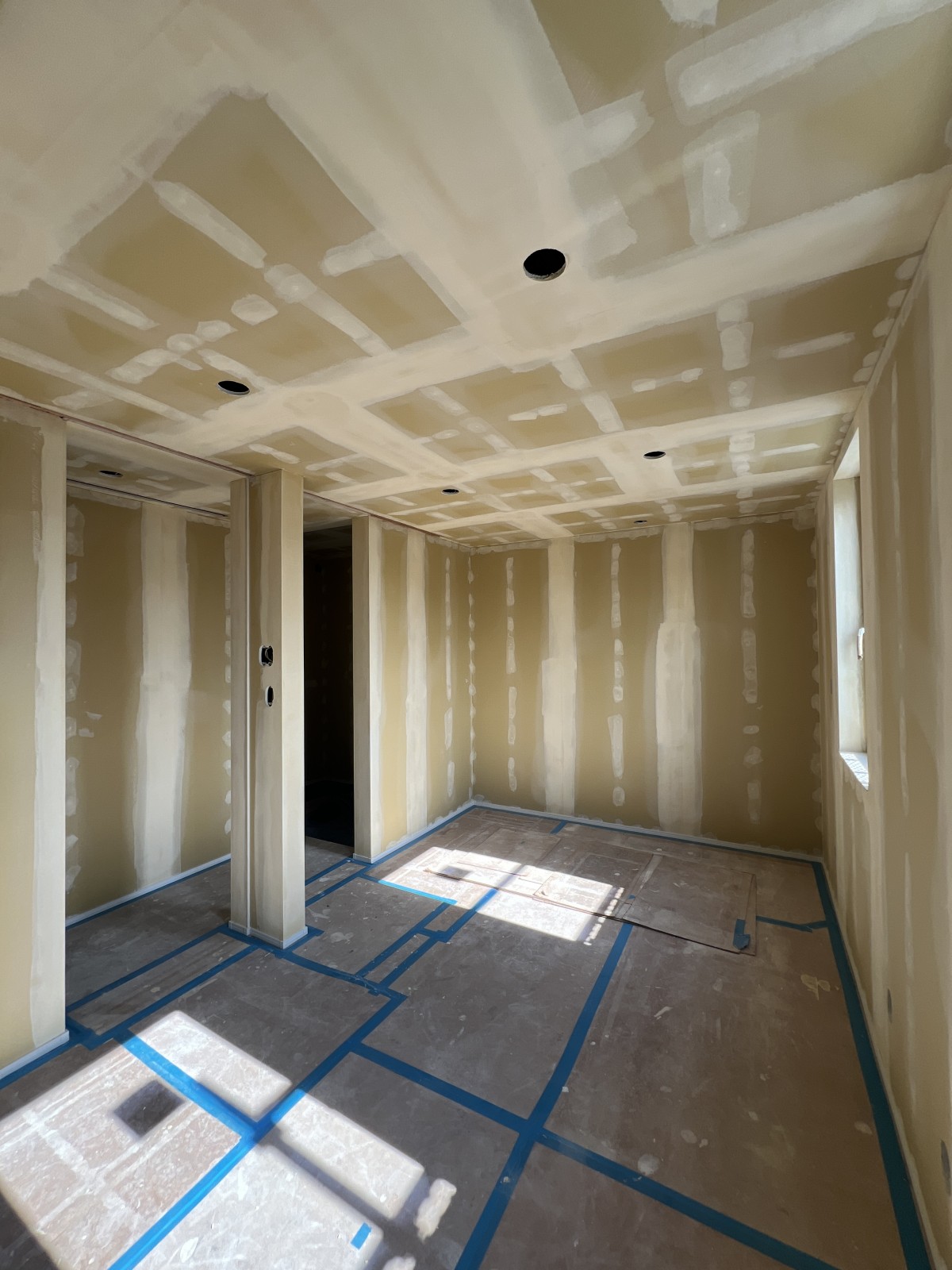 室内に入るとどこを見てもパテが塗ってある!