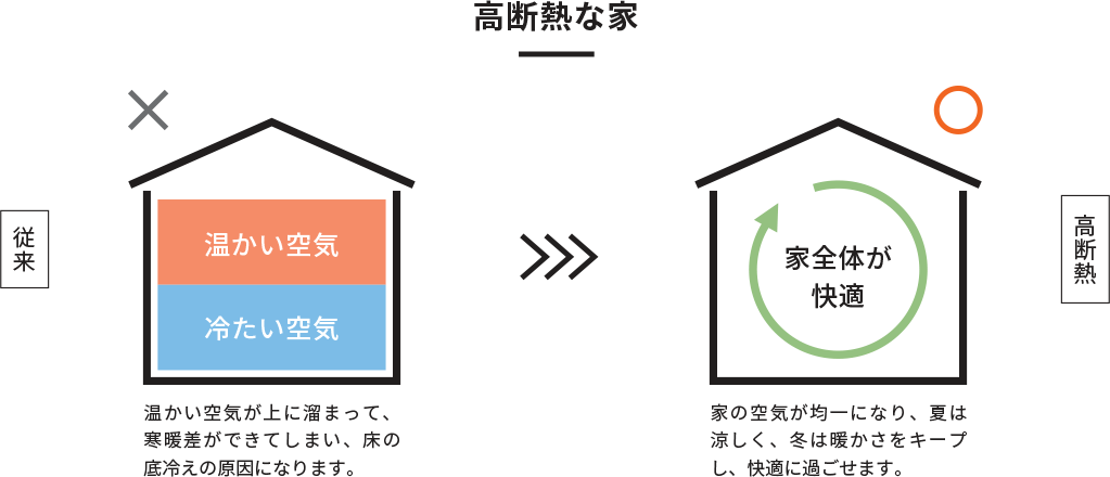 高断熱と高い気密性により、外気の影響を最小限に止めることができます。