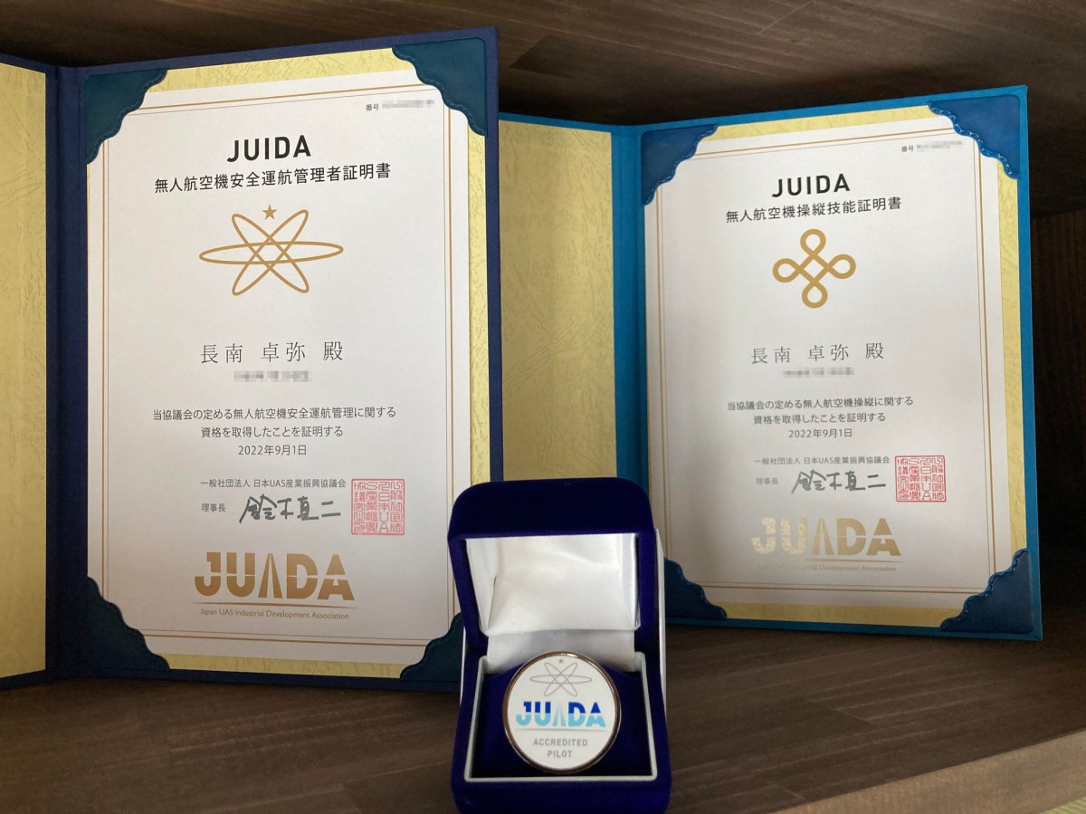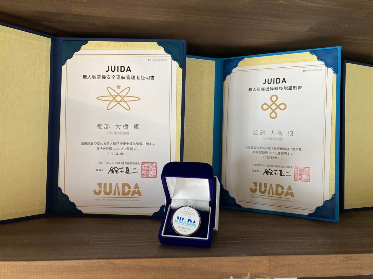 ドローンビジネスカレッジ三八五青森校で3日間の講習を終え、無事二名が操縦技能証明証と安全運航管理者証明証の資格を取得しました!