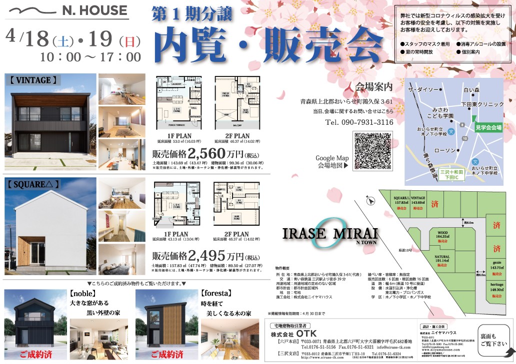 【おいらせ町】4/18・4/19 「IRASE MIRAI N TOWN」内覧・販売会開催!!