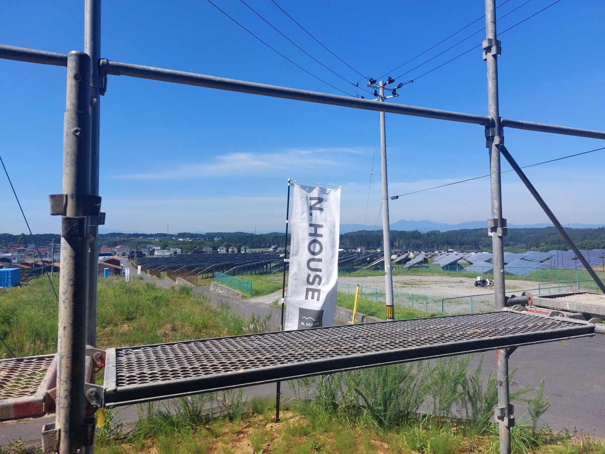 六戸町小松ヶ丘の建築中の建物のLDKから八甲田方面を眺めてみました。