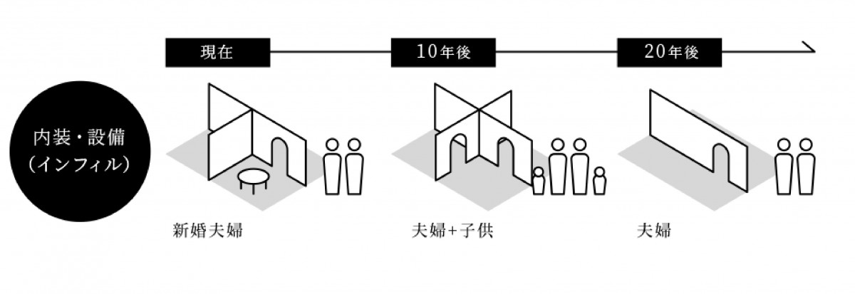 そんな時は、家の間取りを可変型にしてみたらどうでしょう。子供が巣立っていって、使わなくなった部屋の間仕切を取っ払って大きなフリースペースとして活用したり、仕事をリタイアした後の趣味の部屋として自由気ままに広々と使うなど、使い方は自由です。是非、部屋の間仕切を自由に変えられるスケルトンインフィル工法を採用しているかを確かめてみてください。