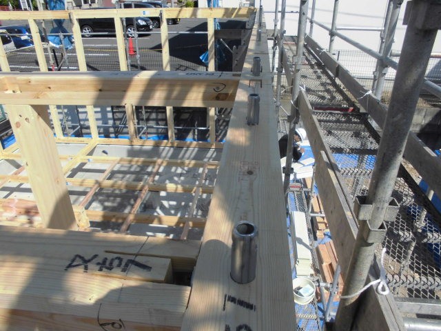 現在着工中の三沢市大町の現場では「建方(たてかた)」が行われました。