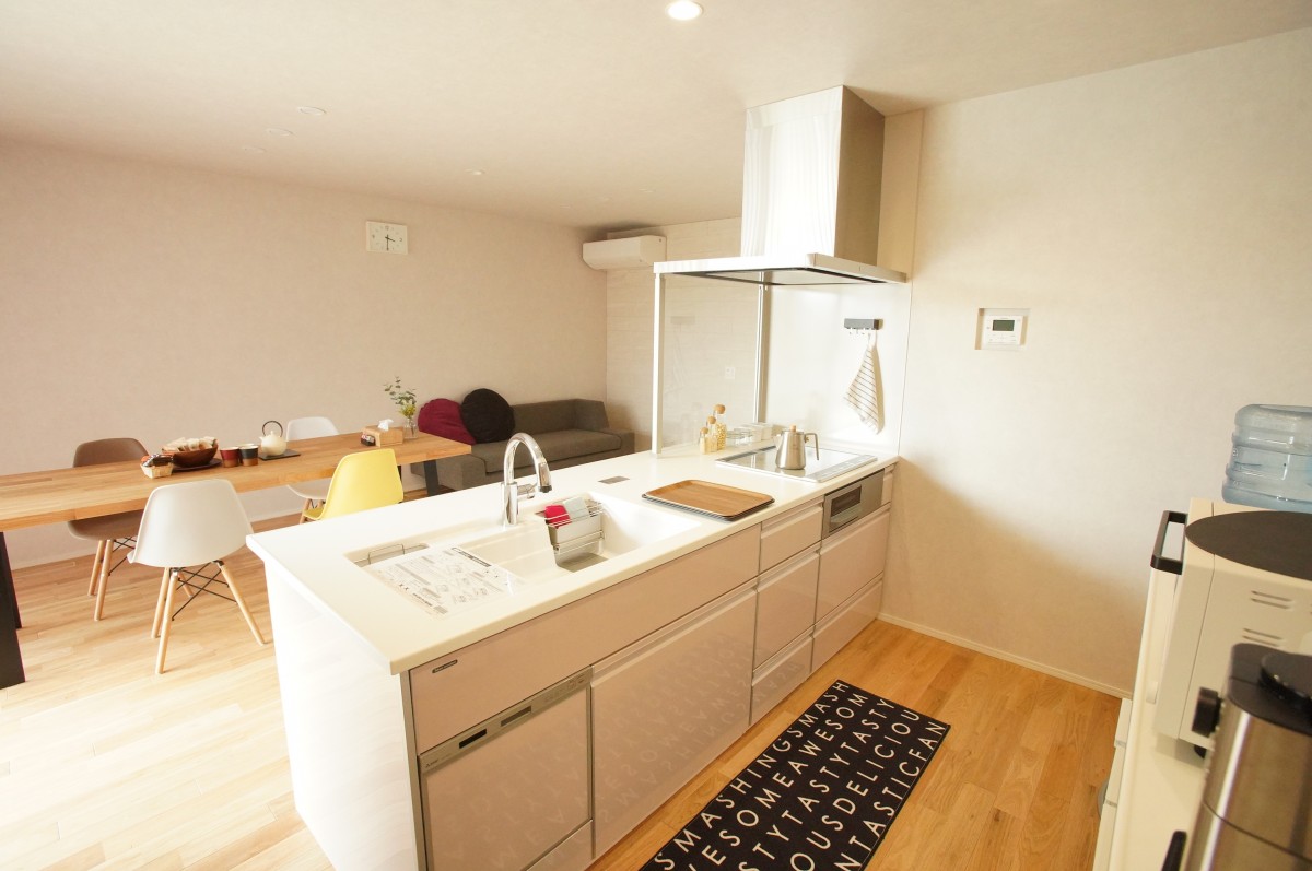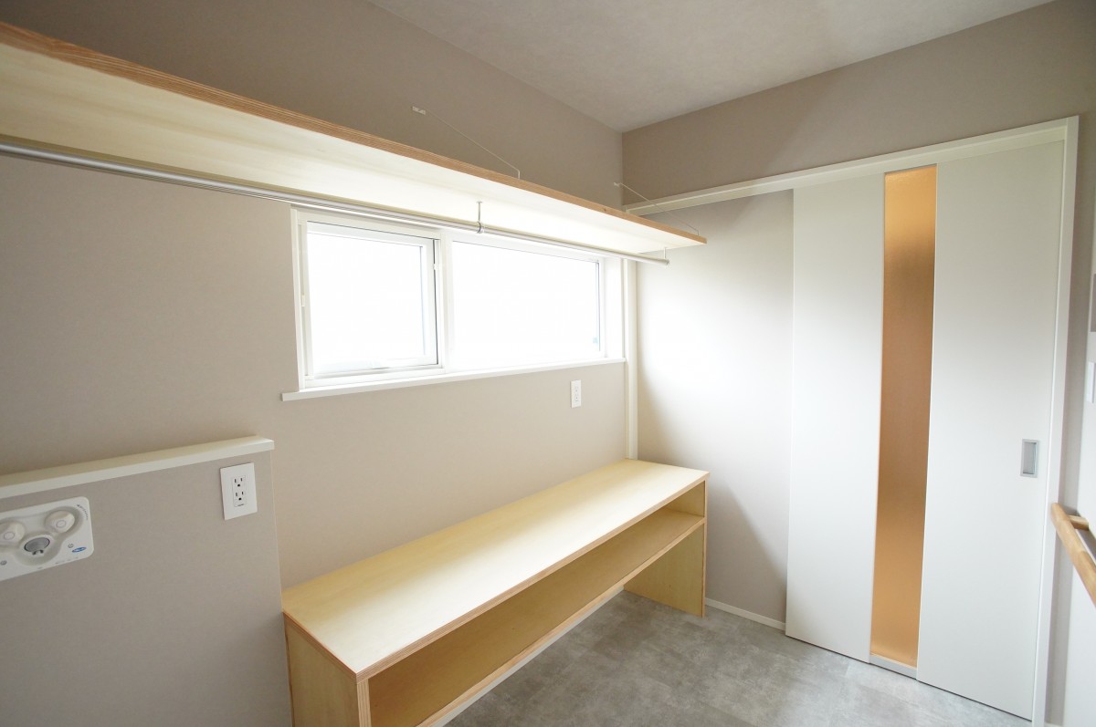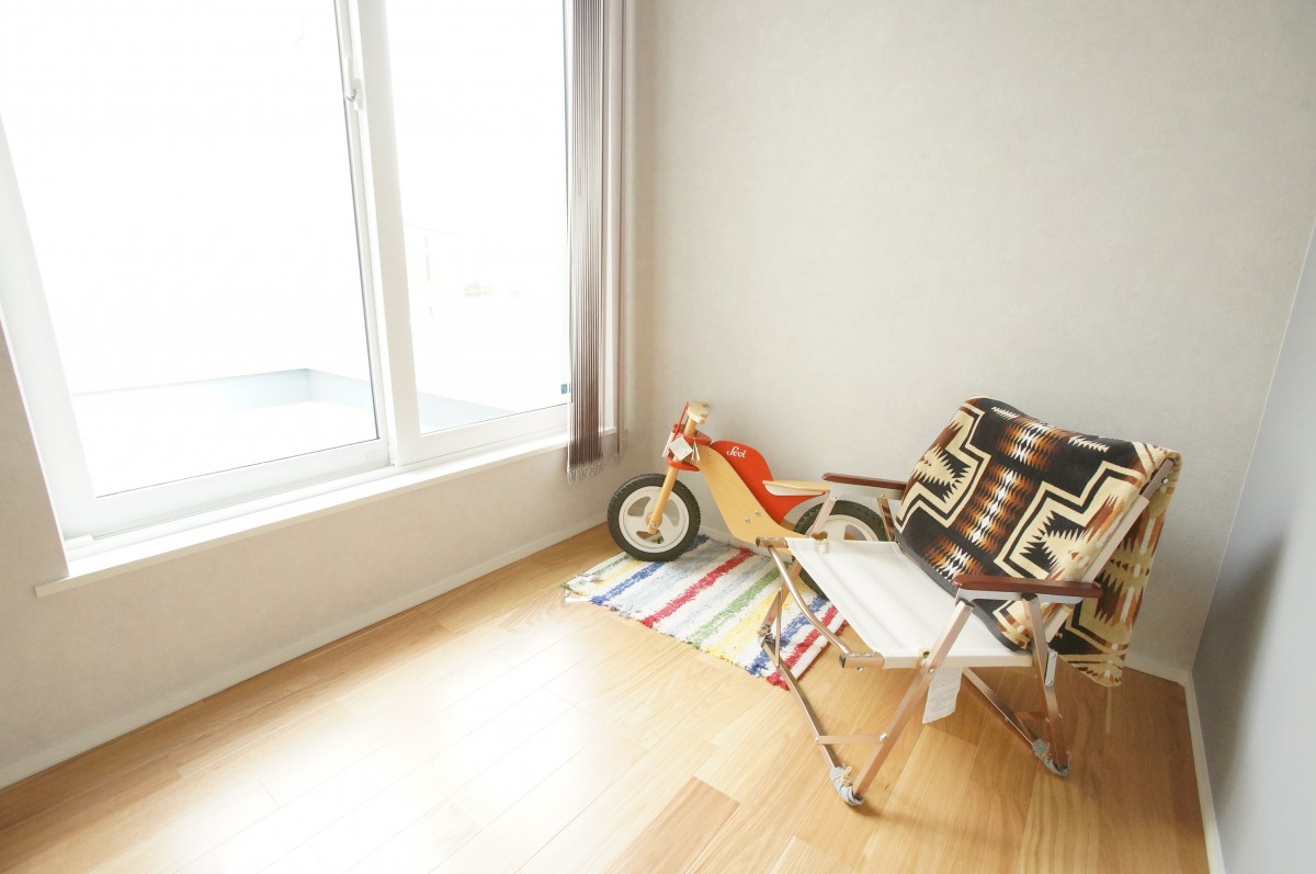スマートスピーカーと連動出来る照明が設置されています。声で照明を付けたり消したりが出来ます。さらに照明は光の調節が出来るタイプなので、声で明るくしたり暗くしたりも出来ます。帰宅して靴を脱いでいる間に「照明をつけて」。ひと手間省けました。スマート家電で連動すれば「テレビをつけて」や「エアコンをつけて」など、声で操作できるようになり、どんどん便利になります。声ですべてを制御する、そんな生活スタイルが可能です。