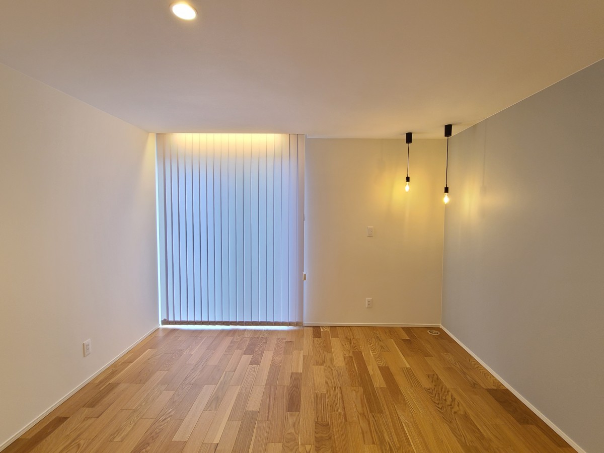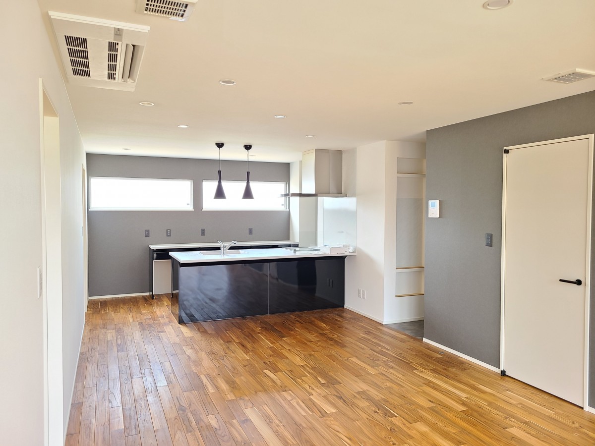 床フローリング張りが終わりました。リビングの床は無垢のチークという木の床材です。チークには天然油成分が含まれているので、水に強く、耐久性に優れ、腐りにくい特徴があります。世界三大銘木の一つとも言われています。作業の方はとにかく枚数が多いので、ひたすら繰り返しの作業です。無垢材は調湿作用(空気中の水分を調整する作用)を持ち、湿気を吸い込んだり吐き出したりすることによって膨張あるいは収縮します。よって床を張る時には床材の間に紙を挟んで、あえて紙の厚さ分の隙間を空けて施工します。これによって夏場など湿度が高く、床材が膨張したときの反り返りなどを防ぎます。さすが世界三大銘木と言われるだけあって、触り心地、ふみ心地は最高です。