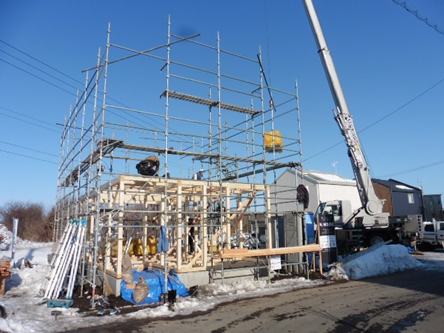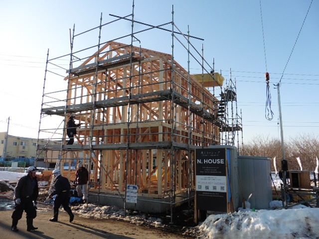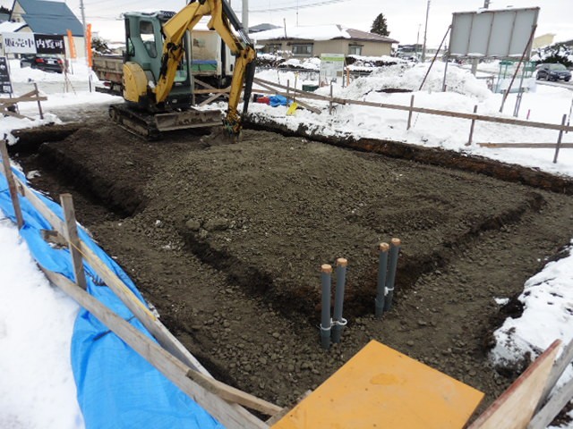おいらせ町鶉久保分譲地NTOWNに10棟目が着工しました。今回建築される建物は「luce(ルーチェ)」という名前の建物です。イタリア語で光、輝きなどを意味します。外観は真っ白な金属の外壁です。耐久性の高いガルバリウム鋼板を採用していますので、汚れにくく、いつまでも白の美しさを保ちます。よって「いつまでも白さが続く家」というキャッチコピーから、「luce(ルーチェ)」という名前が付きました。現場の方は基礎・建方が終わりました。基礎工事中は大雪に見舞われ、雪かきが大変でしたが、無事建方まで終えることが出来ました。NTOWNの一番目立つところに建てていますので、まさにルーチェのごとく白く輝いてくれることでしょう。完成が楽しみです。