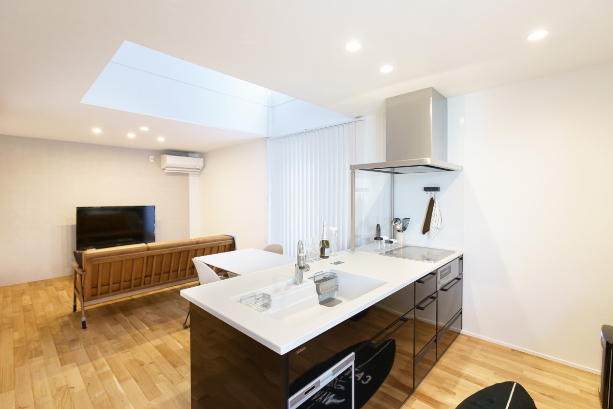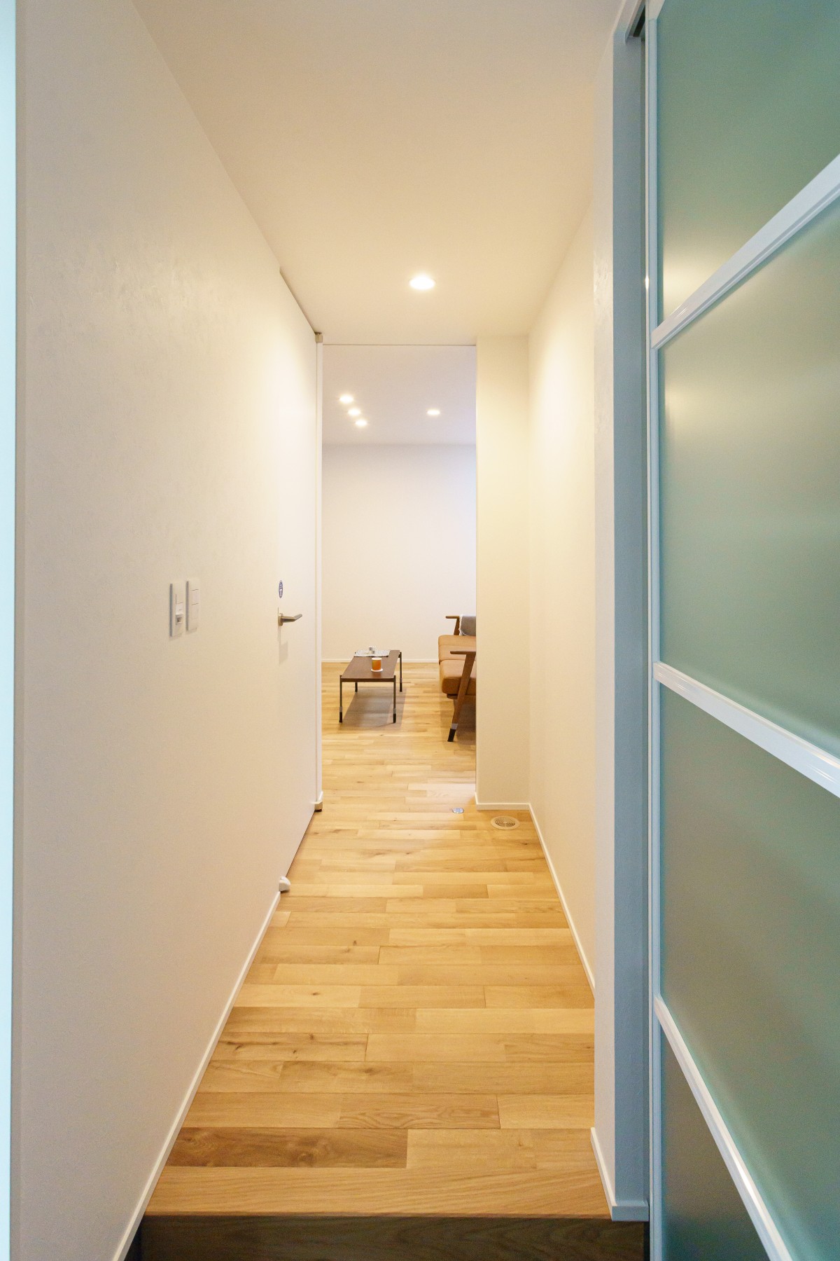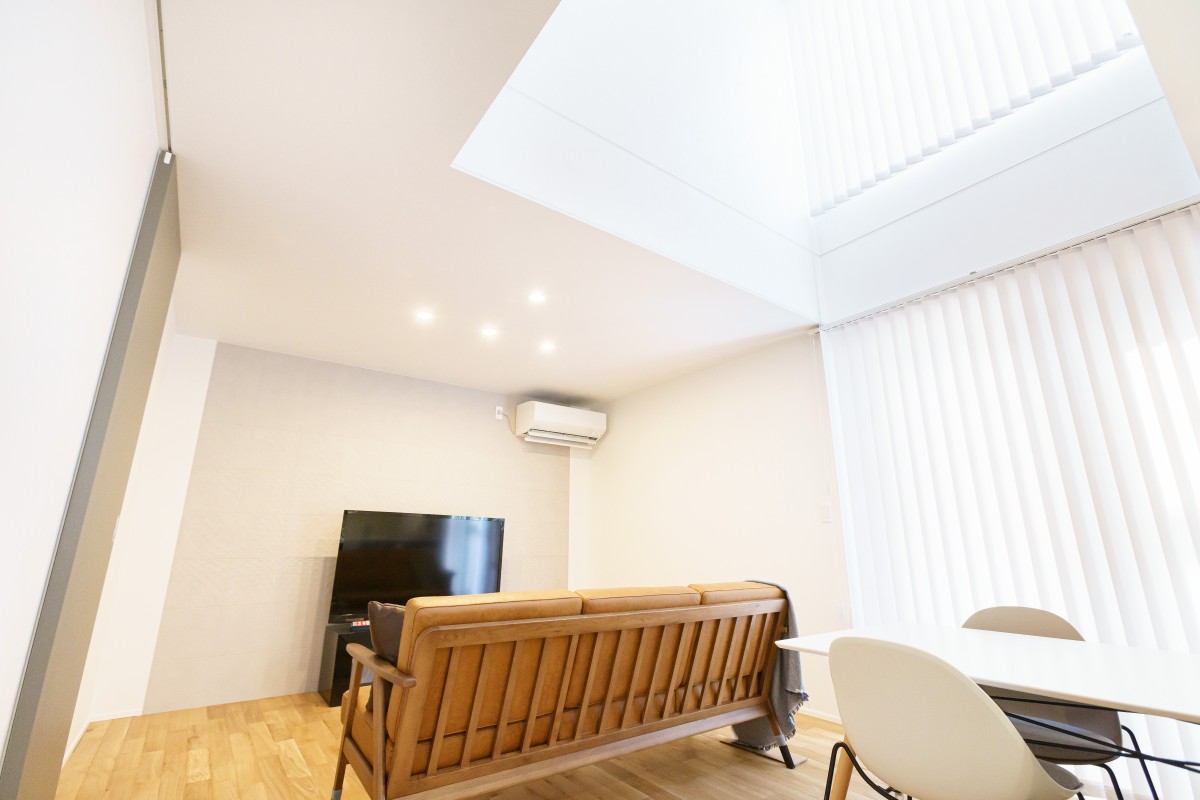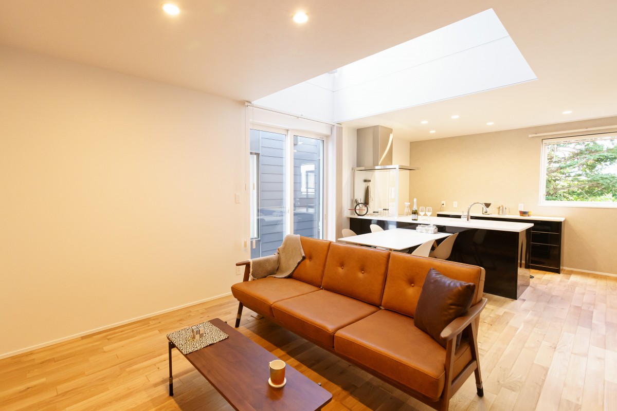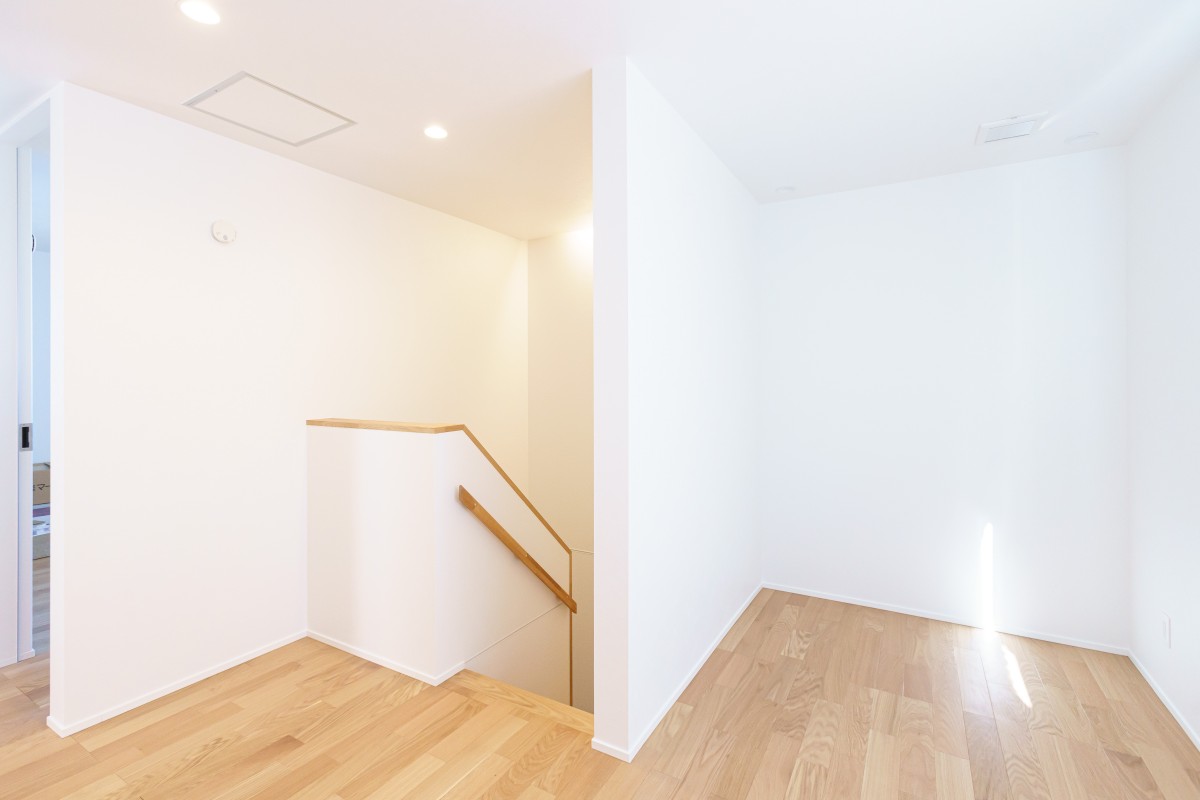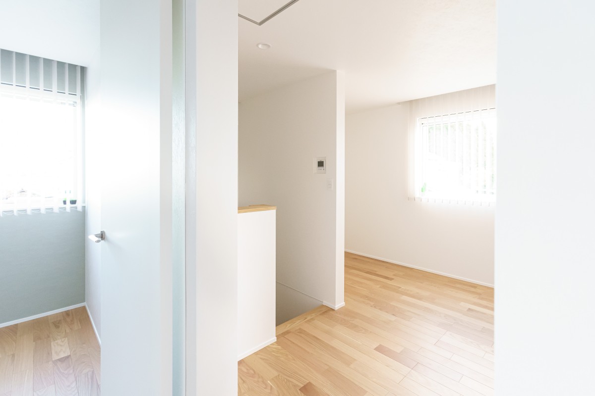 外観はまるで美術館のようなデザインで、シンプルという名前がピッタリです。16.5帖の広々としたLDKの真ん中には、2階部分に大きな窓がある吹抜けがあり、そこからリビングに光がたくさん差し込みます。2階は寝室が3部屋のほかに、吹き抜けからリビングが見下ろせるフリースペースもあり、子供たちの様子を感じながらの家事が出来るでしょう。今回初めてシンプル2階建ての建築となりましたが、シンプルという言葉のイメージ通りの仕上がりになりました。