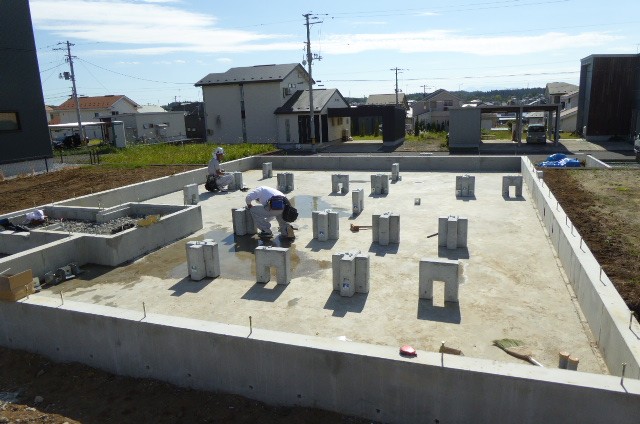 六戸町でlaybricks(レイブリックス)の平屋が着工しました。白を基調としたレンガ造り風の外観が美しい人気のプランです。今回レイブリックスを平屋での建築は初めてです。仕上がりが楽しみです。