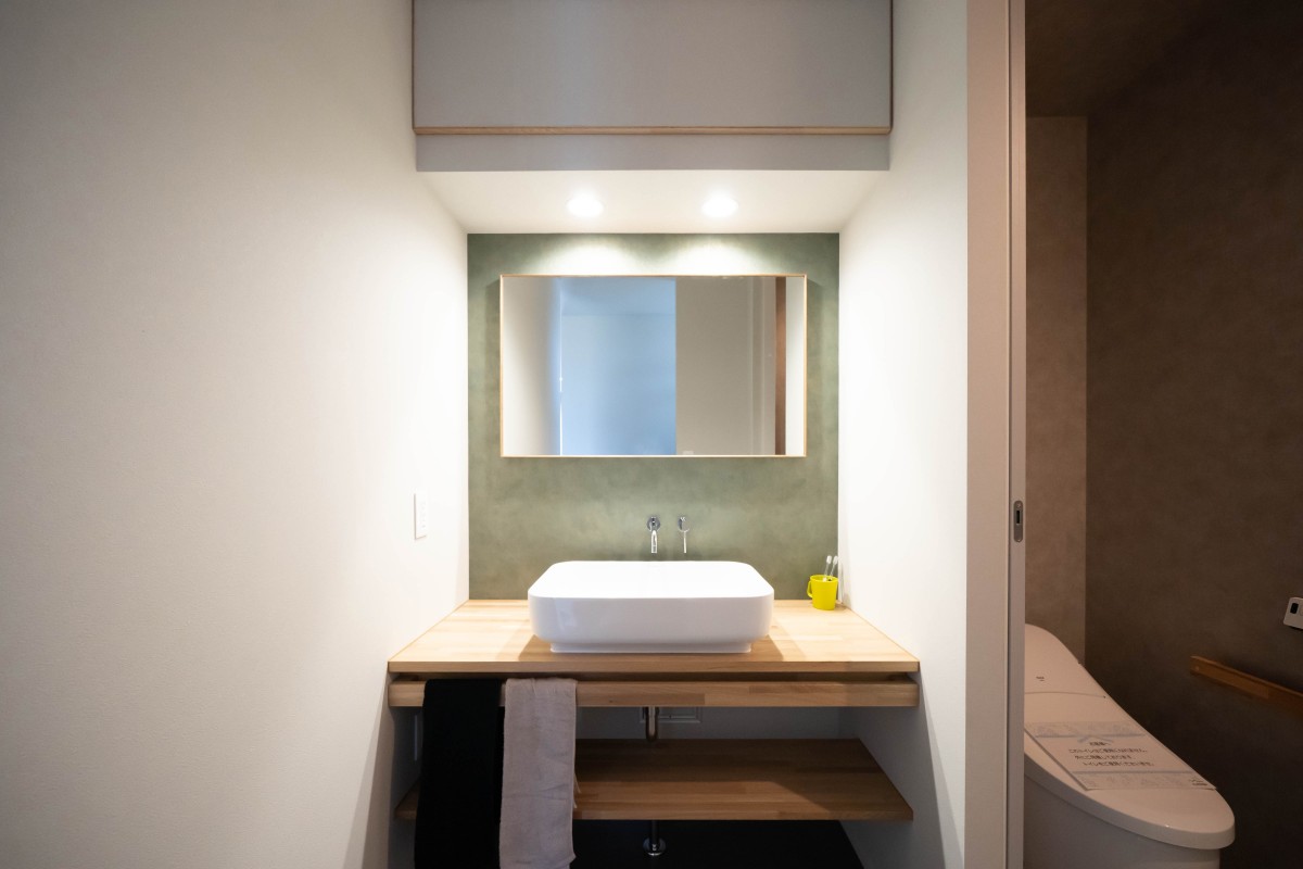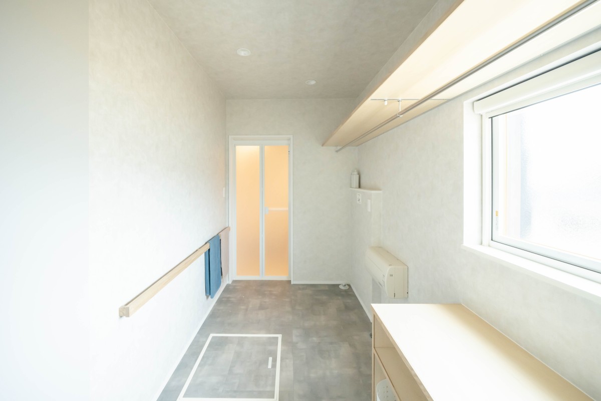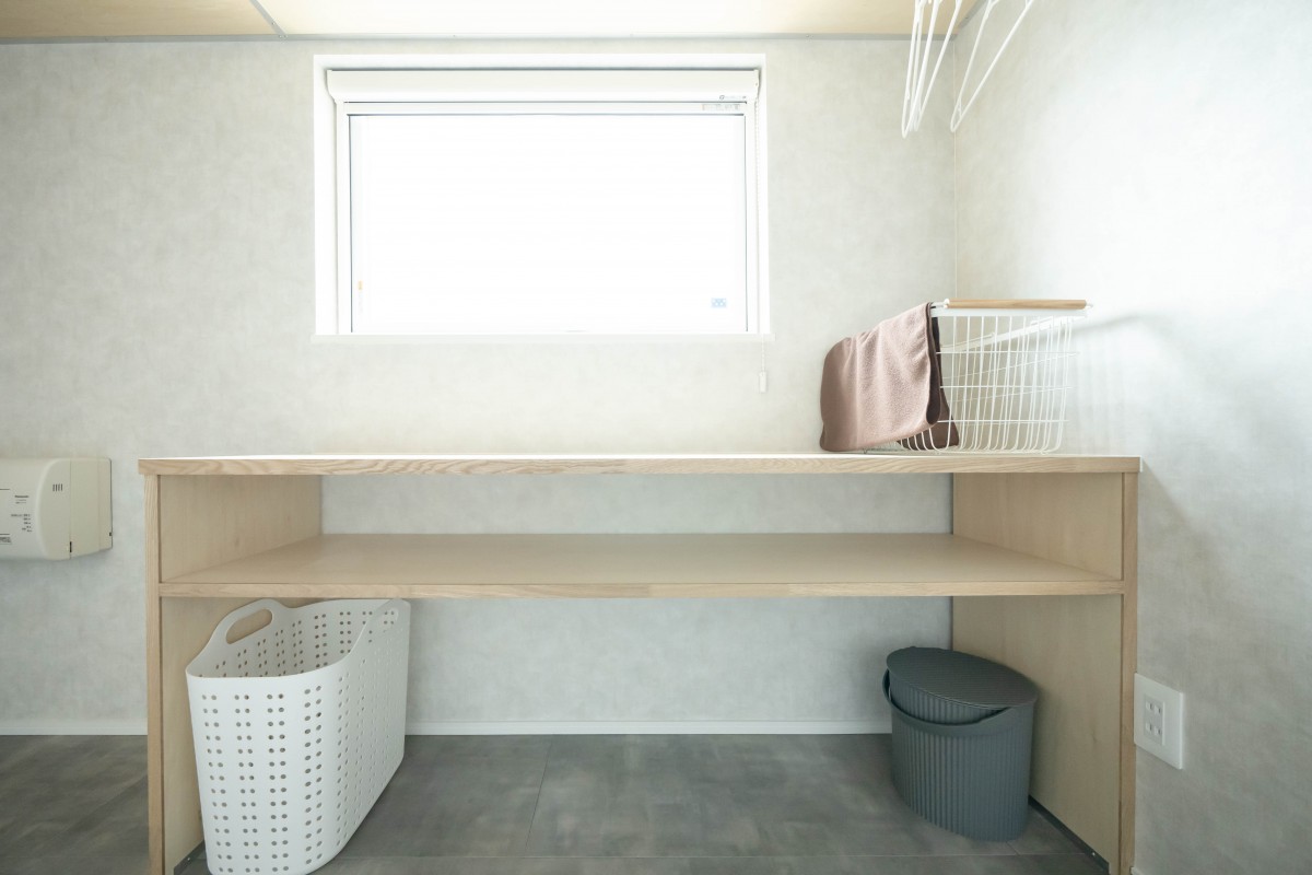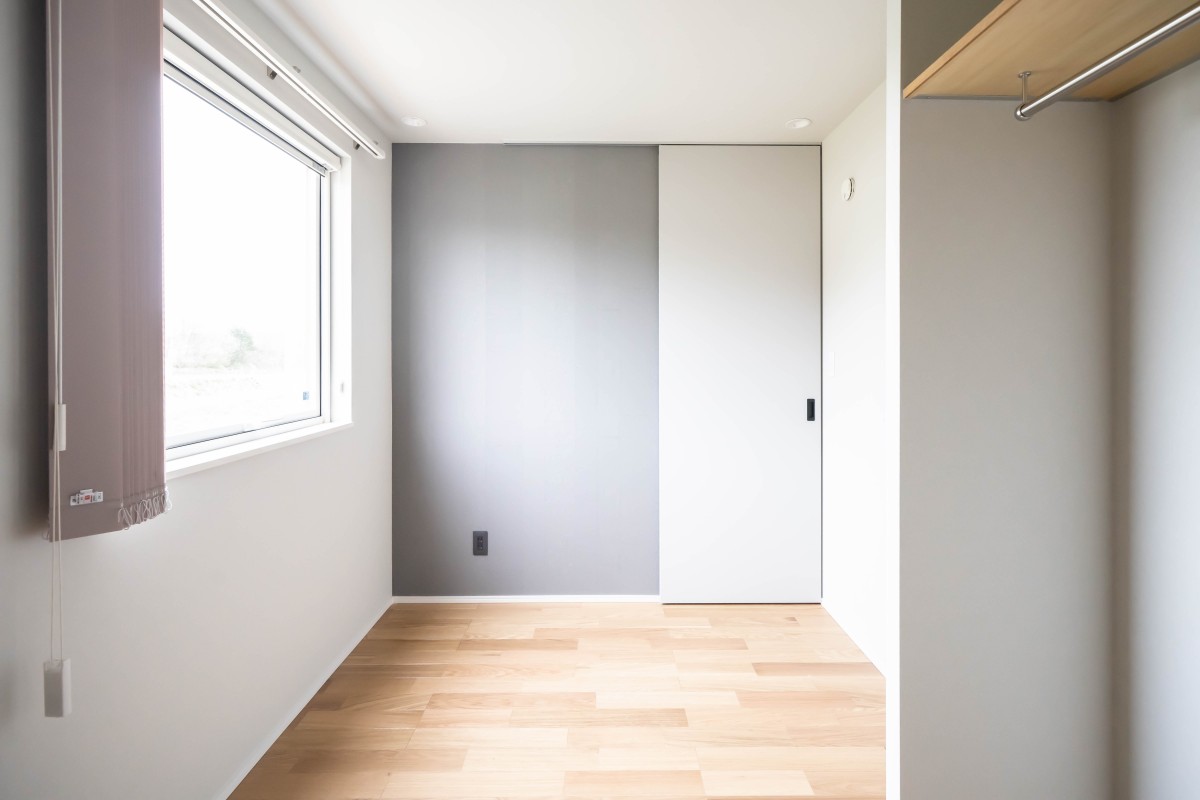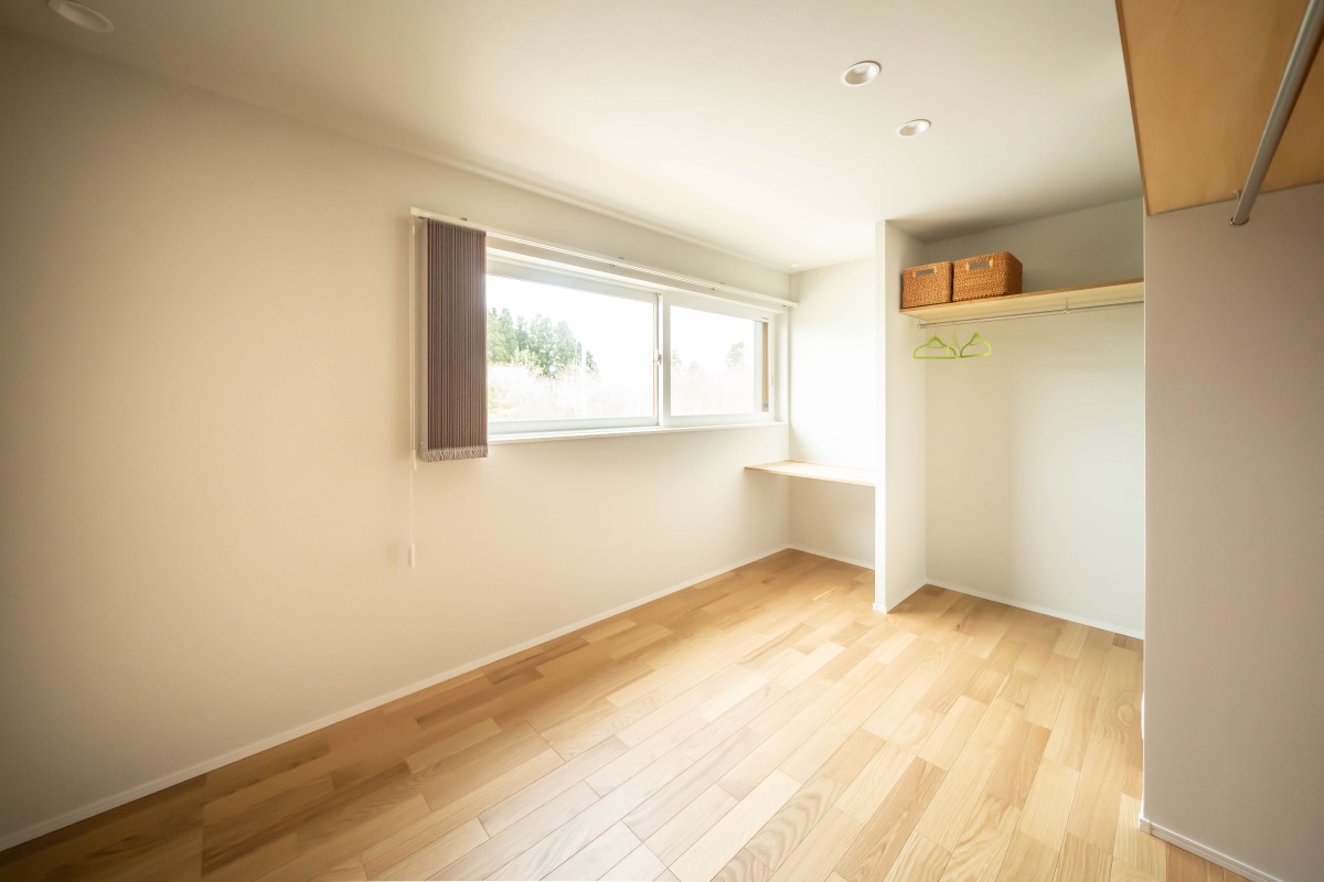 crasu+2階建ての完成です。開放感のある吹き抜けに面している木パネルの壁は迫力がありつつ、木のぬくもりも感じられ、心和むリビングです。こだわりの収納もいっぱいあり、暮らしやすさも兼ね備え、「安」「楽」「快」を家に装備するというコンセプトどおりの仕上がりとなりました。展示場として公開していますので、ご来場お待ちしております。