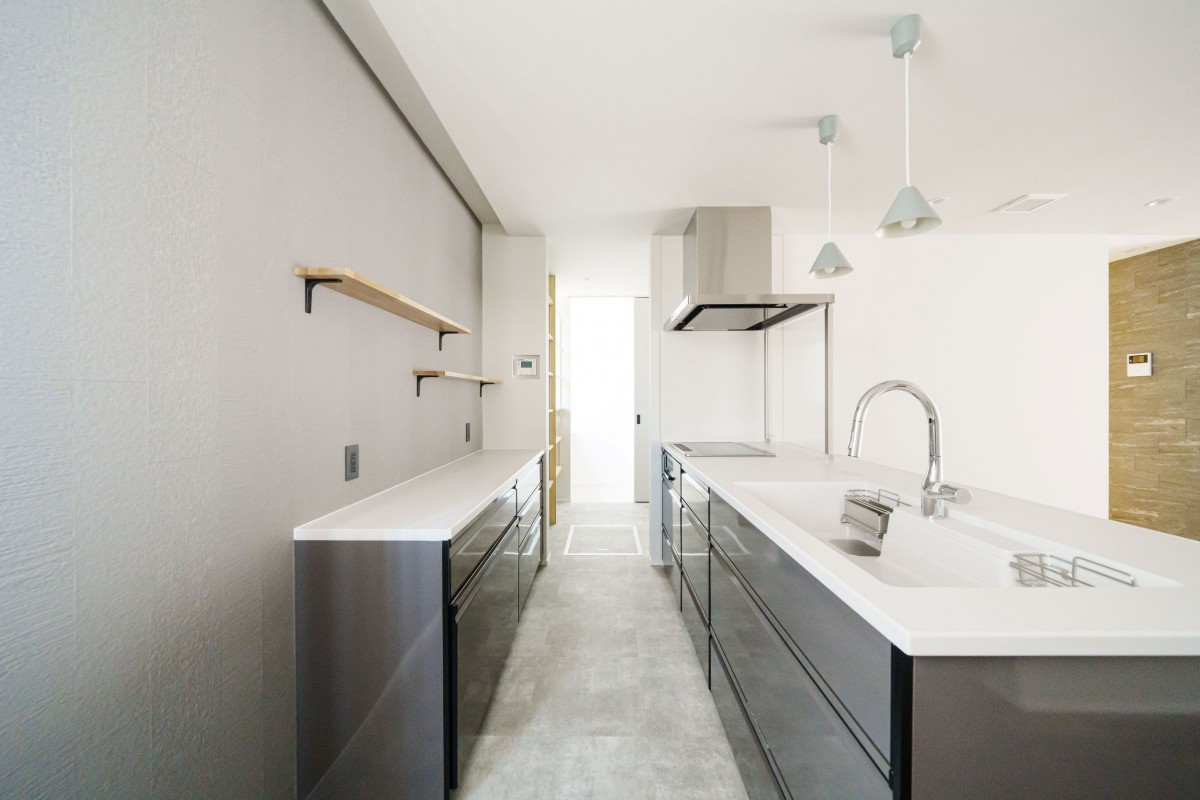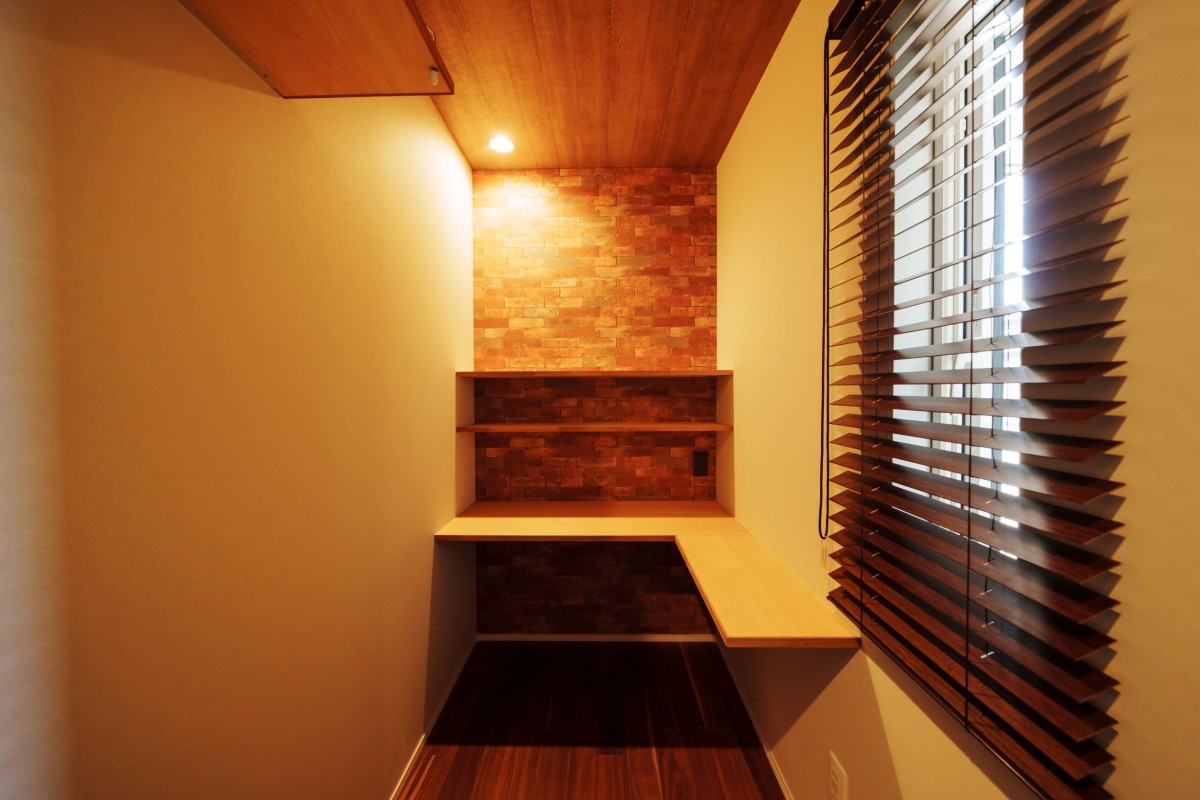黒く引き締まった外観に木格子が映えるシックな仕上がりとなりました。中も広々LDKと寝室が4つもあり、丁度良い広さのスタディールームは、こだわりの内装で、いい雰囲気の部屋に仕上がりました。内装、外装ともに素敵なお住まいの完成です。