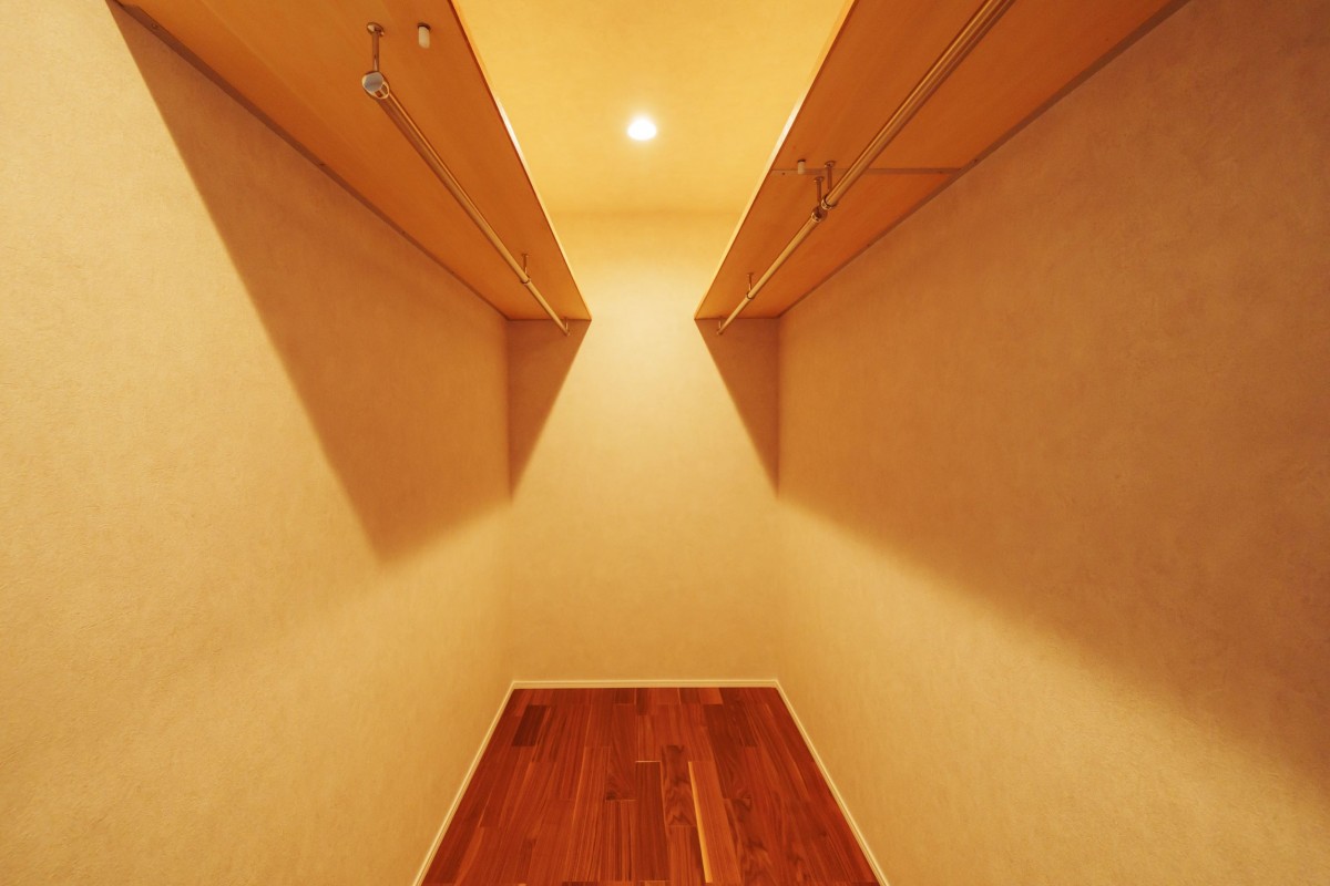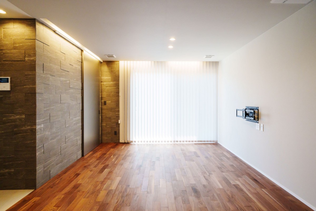 床材はブラックウォールナットです。引き締まった濃褐色で素敵なリビングになりそうです。