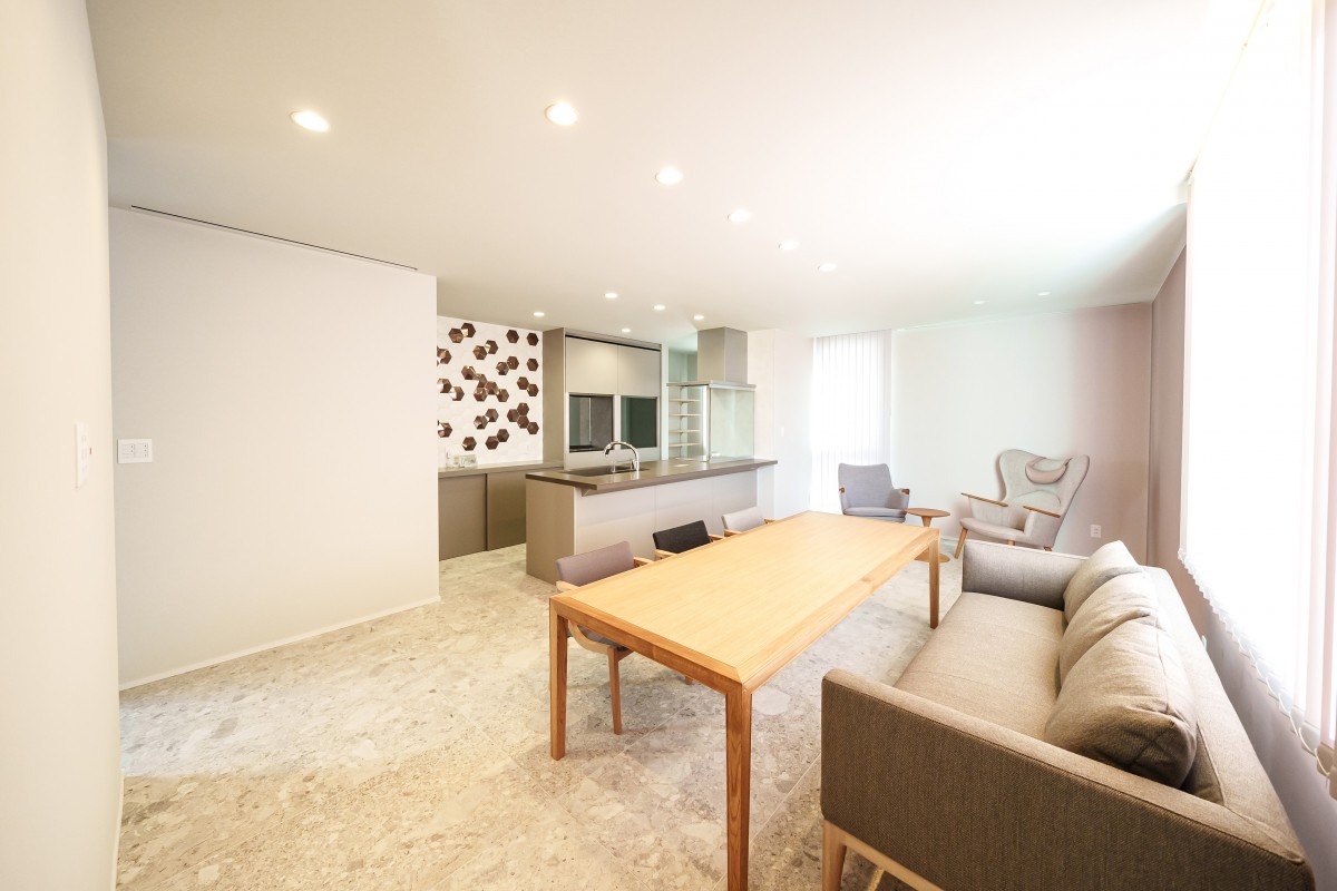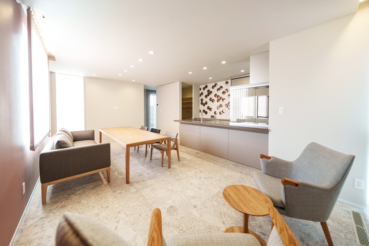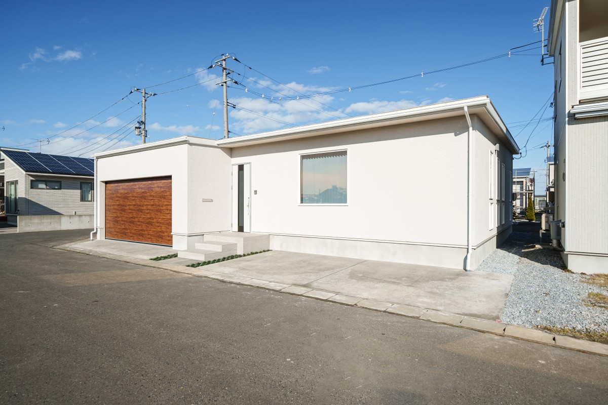 『ビルトインガレージと中庭がある白い外観の平屋 』SQUARERが完成しました。ガレージあり、中庭あり、平屋ながら約40坪の床面積で、これぞ豪邸と呼んでいいお住まいではないでしょうか。外観は真っ白な外壁に木目のガレージシャッターが良く映える、素敵なデザインです。内装は厳選した壁紙やタイルを使用して、美しい仕上がりになりました。設備や家具もいいものを揃え、まさにプレミアムなお住まいが完成しました。