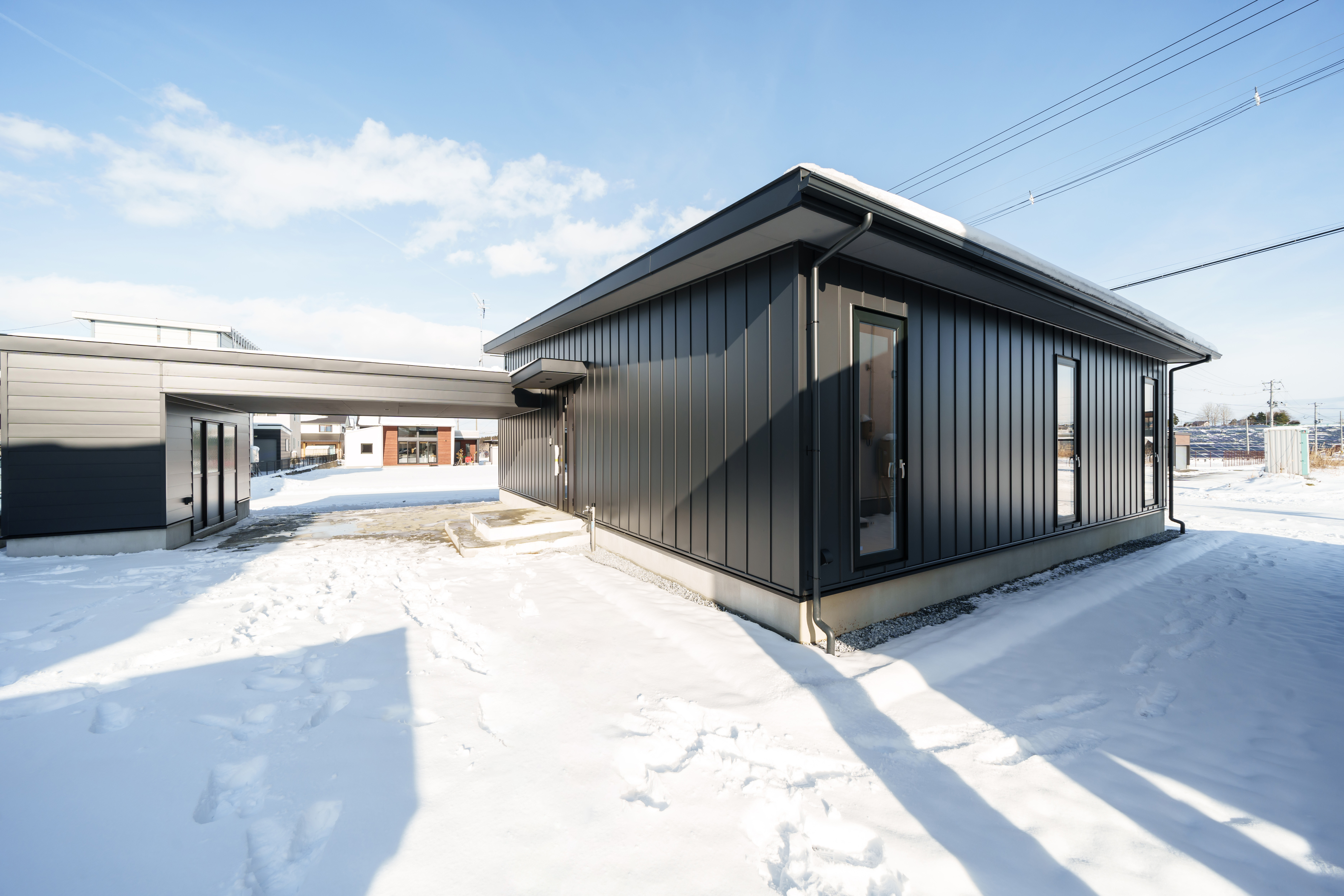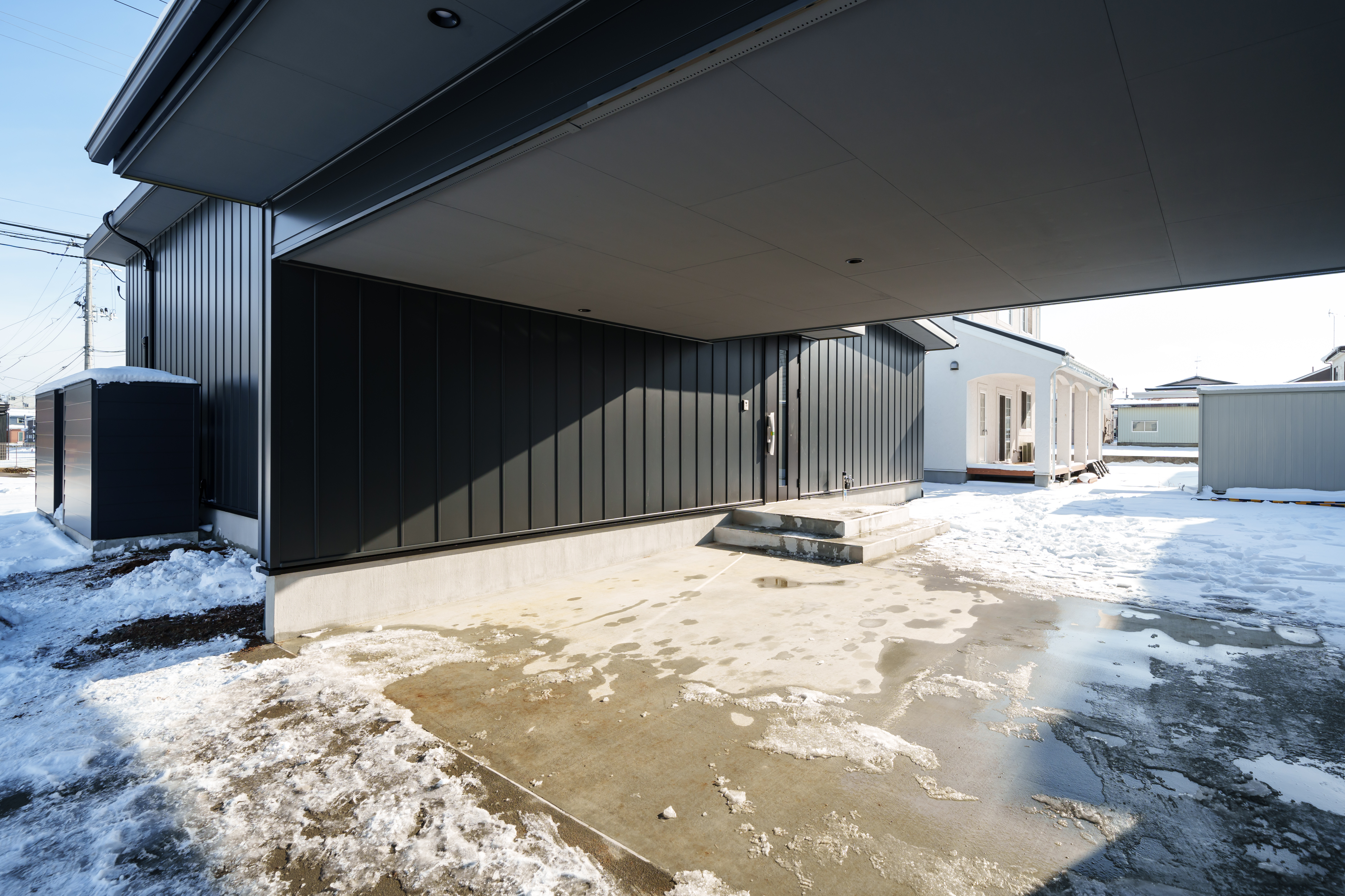 『中庭がある黒い外観の平屋 』VINTAGEが完成しました。贅沢にも中庭を設けた間取りで、プライバシーに守られたリビングには、中庭からたくさんの日差しが差し込みます。廊下は中庭沿いに設置されていて、人が交差しないスムーズな動線が確保できます。何と言っても外観デザインが斬新で、住宅と物置をつなぐ大きな屋根が、カーポートの役割を果たします。斬新なデザインと、斬新な間取りの素敵なお住まいが完成しました。