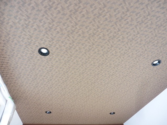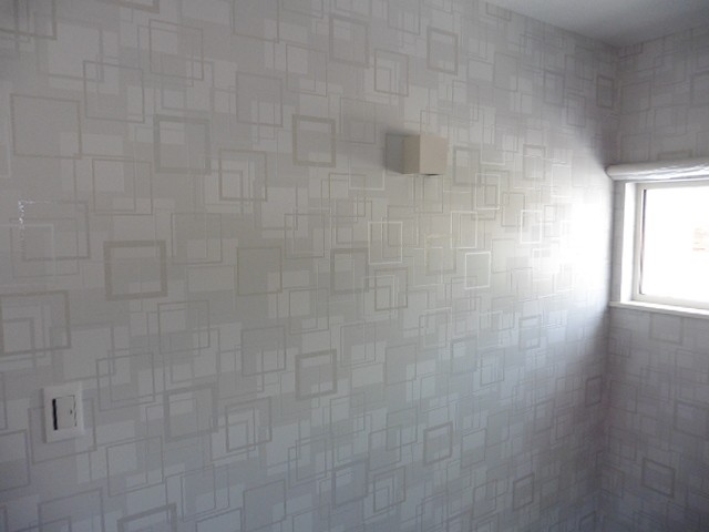 大きな壁紙を何枚も何枚も手際よく貼っていく様はまさに職人技です。空気が入らないように、曲がらないように、よじれないように、1発勝負の緊迫感が感じられます。部屋によっては柄の違う壁紙を貼っていきますので、こちらの現場では約15種類の柄の違う壁紙を貼り分けています。壁紙で部屋のイメージがガラッと変わりますね。なかなかいい柄の壁紙です。