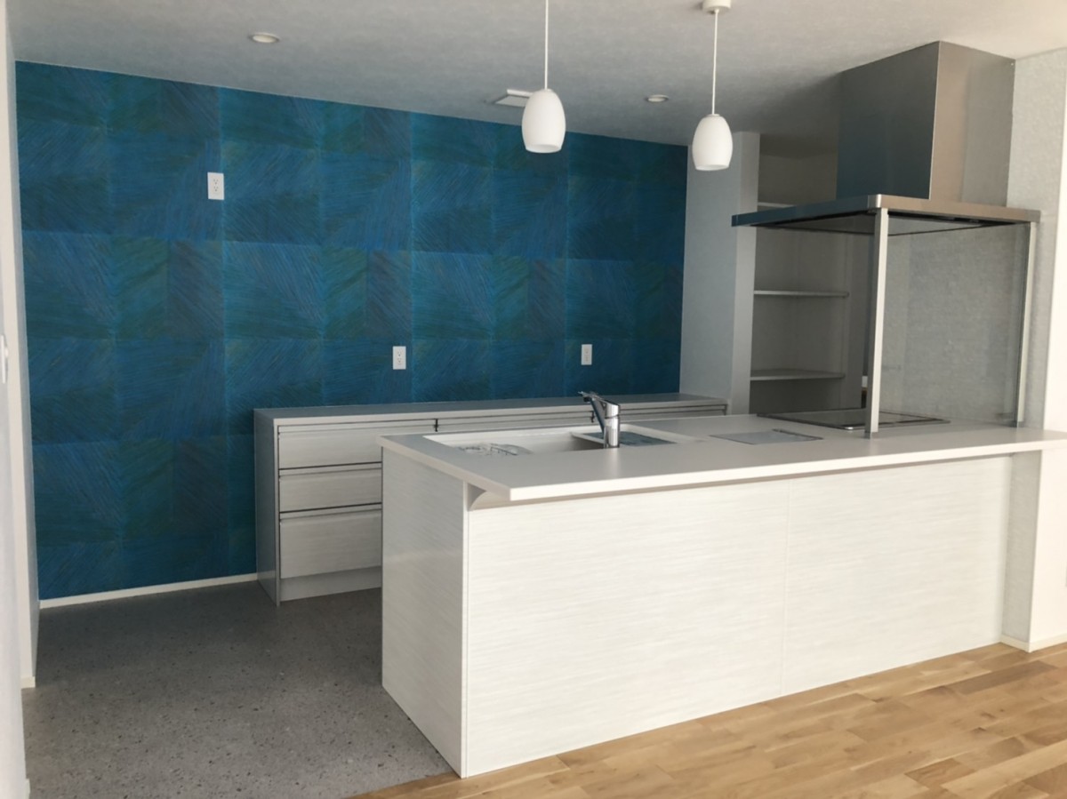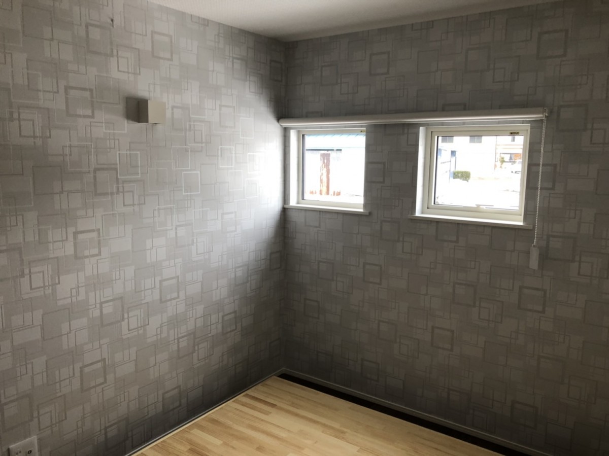 現場の方はいよいよ終盤です。内装工事が順調に進み、壁紙貼りも終わりました。壁紙が貼り終わると、部屋らしくなってきて、完成が近いなと感じます。
