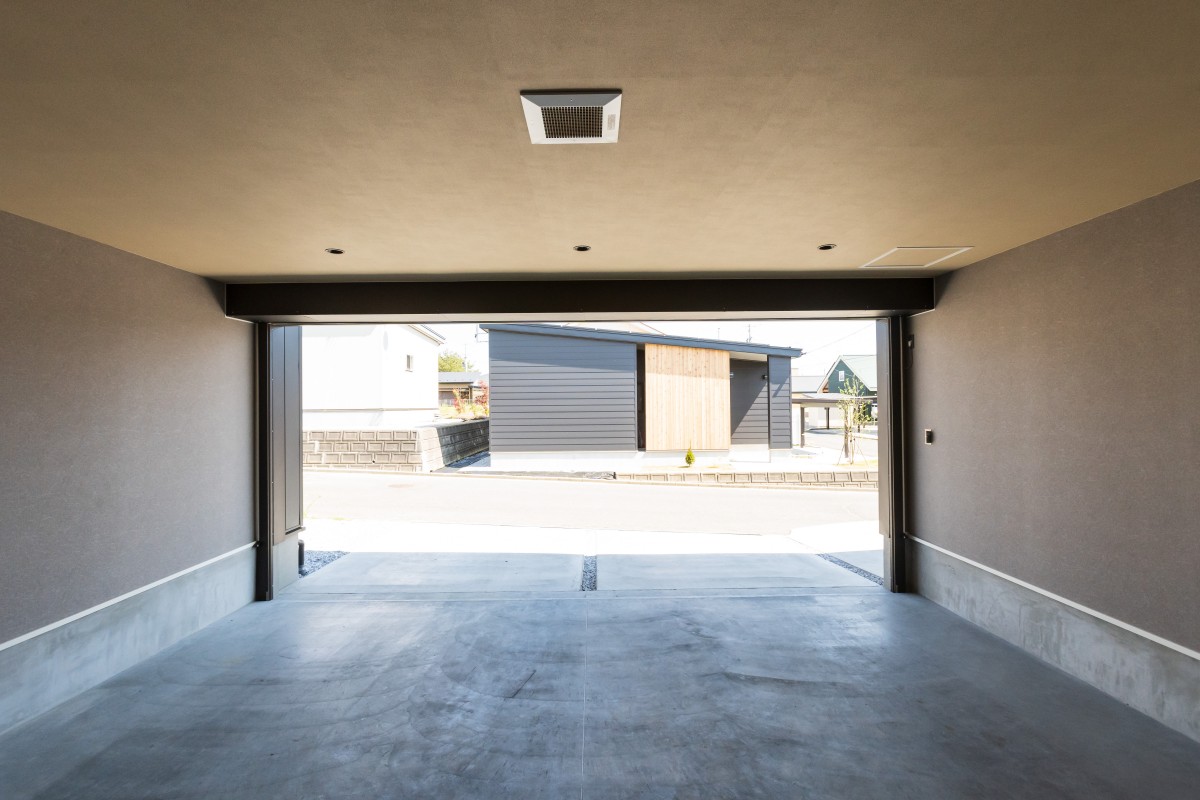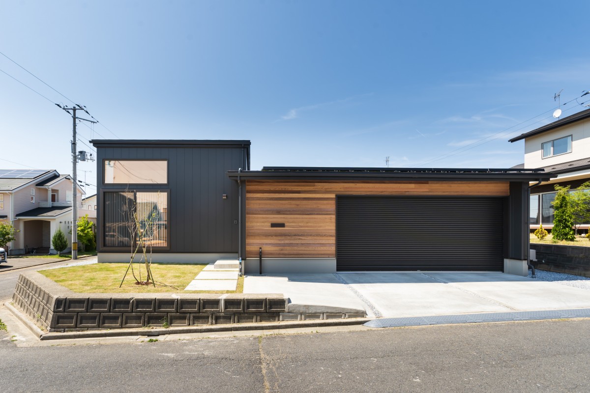六戸町に新たに着工したのは、HOMAで人気のプランのnobleで、黒を基調とした外観に大きなガレージがあるのが特徴です。