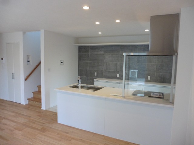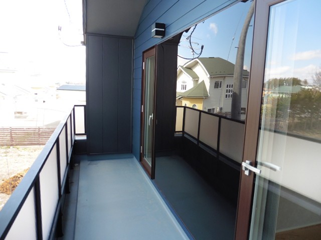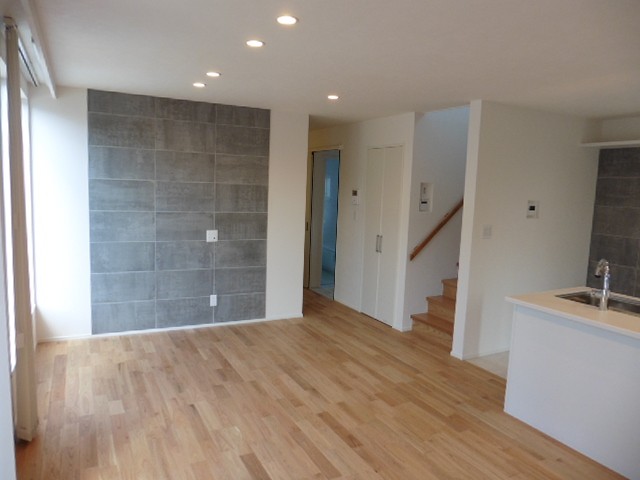N TOWNの3棟目が完成しました。大きなバルコニーが特徴のnoble(ノーブル)です。バルコニーは2つの部屋から出入りが出来て、バルコニーからは分譲地全体が見渡せます。リビングの床は木目の美しい無垢の床材を使っており、真っ白な壁と真っ白なキッチンに相性がいいです。リビングや2階寝室にはスピーカー付きの照明が付いています。スマートフォンなどのBluetooth機能を使って好きな音楽を流せます。好きな音楽を流しながら家事をしたり、お友達を呼んでお気に入りの音楽を流しながらのパーティーなど使い方は様々。お家にいる時間が楽しくなりそうです。
