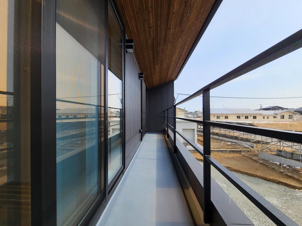 正面にバルコニーのある家