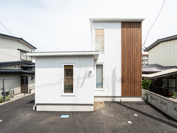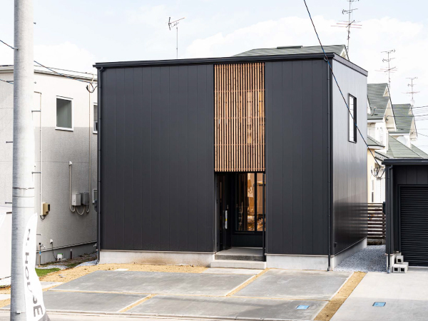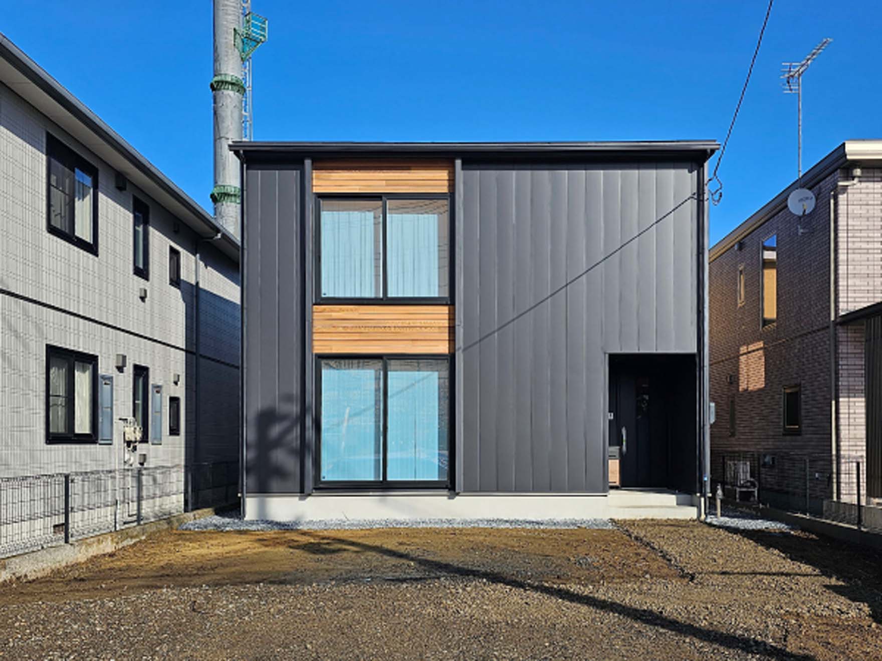 GALVALUME耐久性の高い鋼板と木格子の家 -