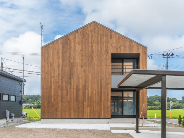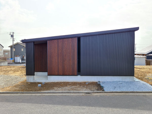 GALVALUME耐久性の高い鋼板と木格子の家 -