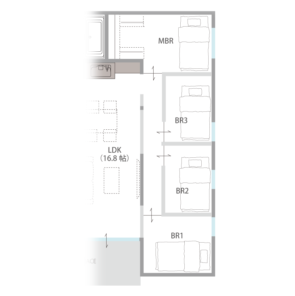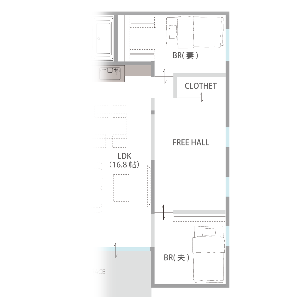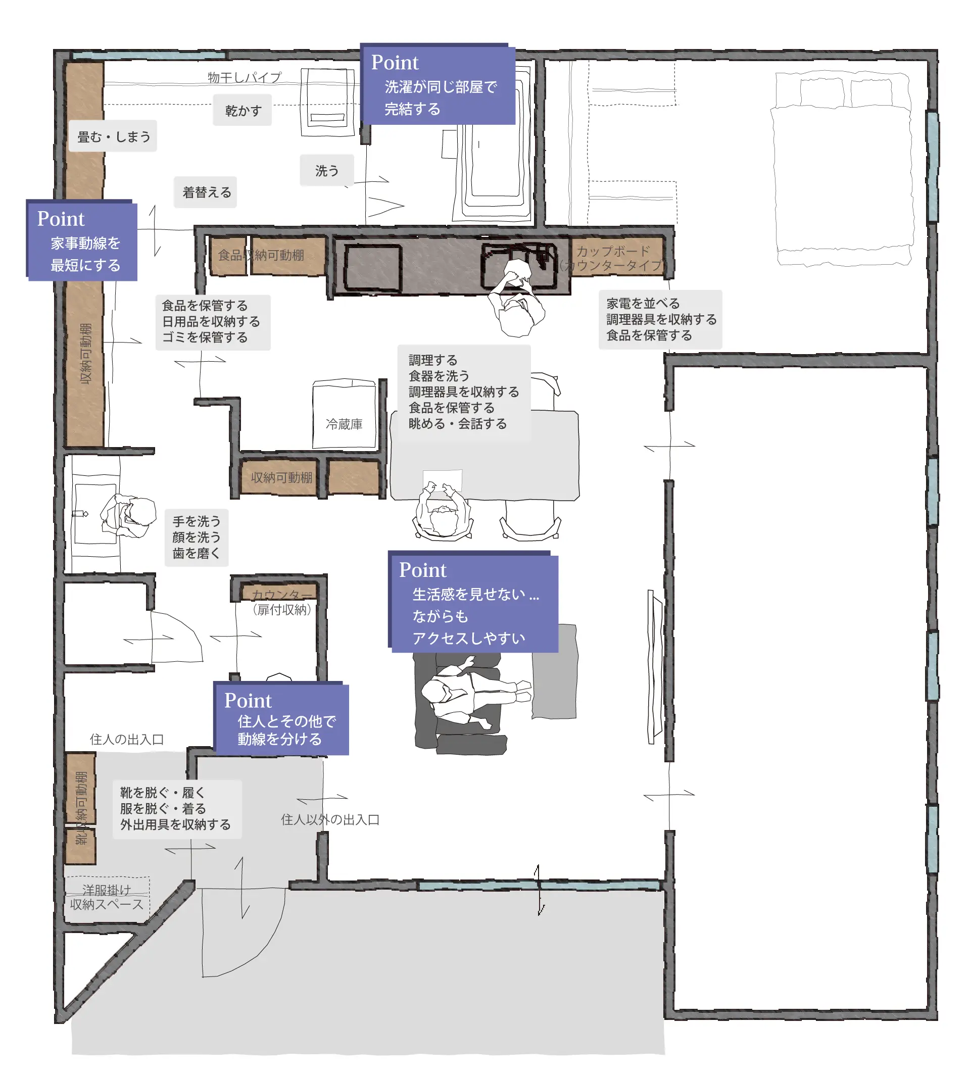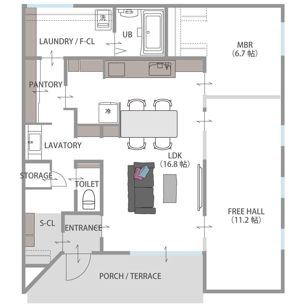 家は数十年に渡り住み続けます。時間の経過と共に変化し続ける常識、ライフスタイル、家族構成等による間取りに対するニーズの変化に対応しやすいスケルトンインフィルという考え方を取り入れています。