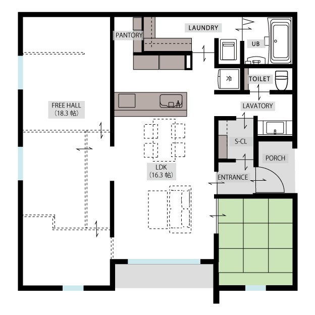 ※「FREE HALL」を破線のように間仕切りした場合の価格です。