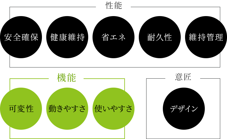 ここでは、機能性を高めるために取り入れている3つの考え方についてお伝えしていきます。