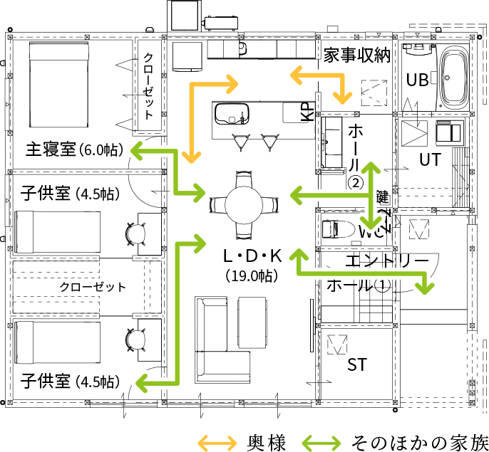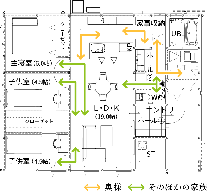 ・一番忙しい奥様の動線と他の家族の動線が重ならない